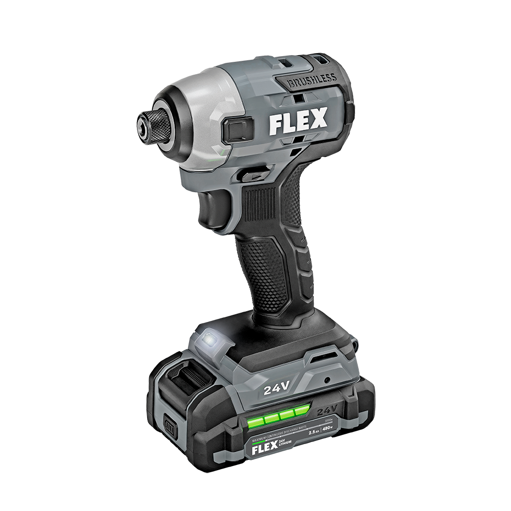 Dominate THE toughest fastening applications with the unrivaled power and control of FLEX 24V Brushless 1/4″ Hex Impact Driver. This impact delivers 1,800 in-lbs. of unrelenting torque, so you can power through lag bolt after lag bolt. Its compact and lightweight design keeps you ready for what’s next. Built-in LED lighting keeps you on the mark. Plus, this driver delivers the FLEX Advantage of unmatched battery power, runtime, and charging speed. All backed by a dependable 5-year warranty.