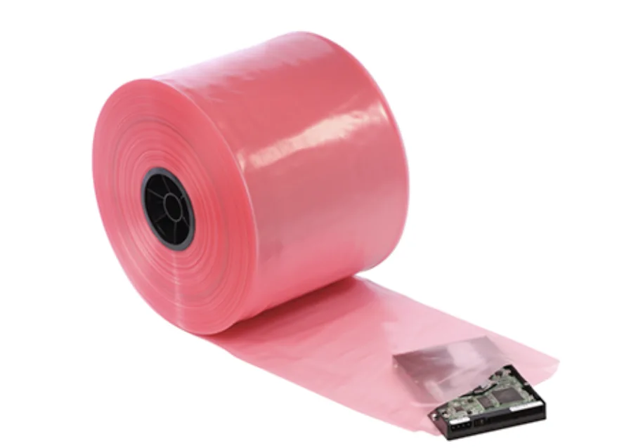 Manufactured with 100% virgin low density polyethylene. Contains a pink color additive. Antistatic properties meet the static decay requirements of MIL-PRF-81705E, Type III and EIA-541. You can see through this product in interior light. Provided on rolls, boxed. This antistatic product is