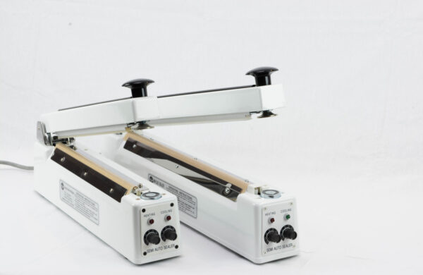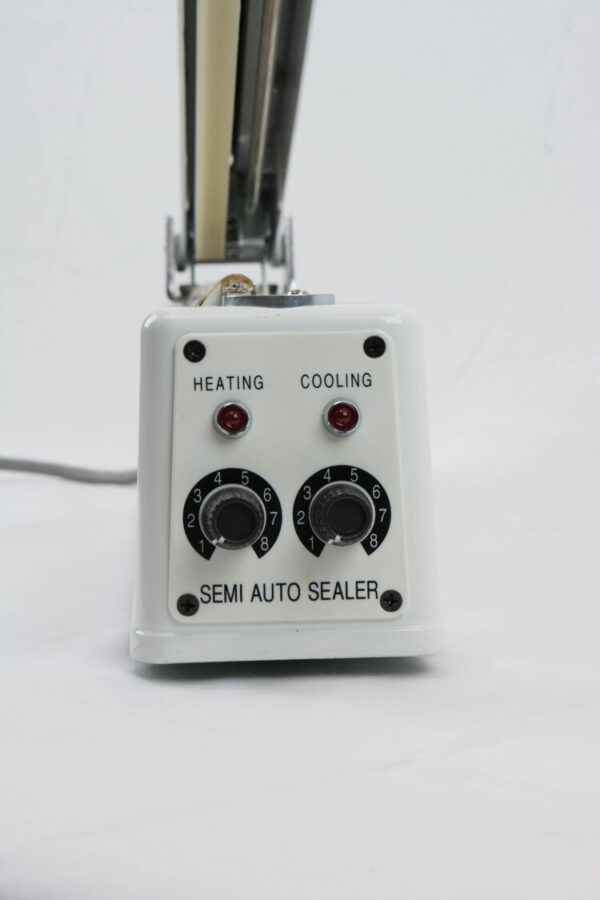 The AIE 300 HIM is part of our Semi-Automatic Magnetic Hold Hand Operated Series that comes with a built in magnet that holds down the sealing arm and automatically releases once the cooling cycle is complete. These models are also equipped with two adjustable timers that allow you to select sealing and congealing time.