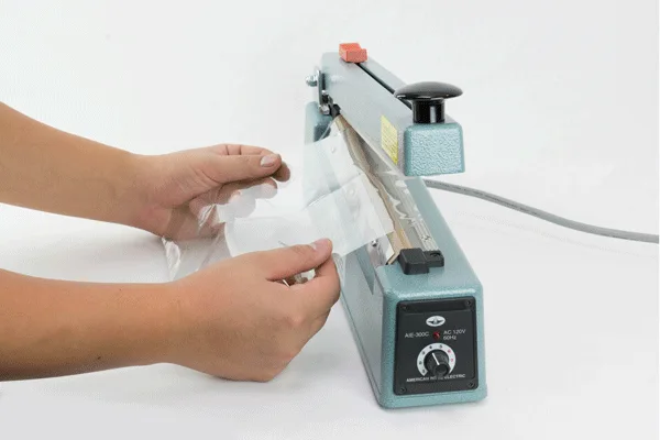 The AIE 400 C is part of our Impulse Hand Operated Sealer C Series that allows you to seal and trim all in one machine. All of our C Series models are equipped with a sliding blade that trims excess material 1/4 inch from the seal.