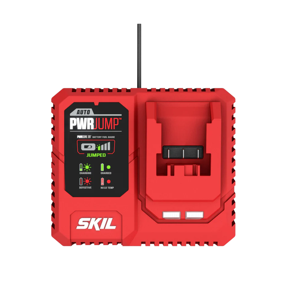 Get Powered Up Fast. Charge any SKIL 20V PWRCORE™ Lithium battery in a flash with the SKIL PWRCORE 20™ Auto PWRJUMP™ Charger. Less charging time for batteries means less downtime, getting you back to the job faster. When you power up your tools with the SKIL 20V Charger, nothing can stand between you and getting the job done.
