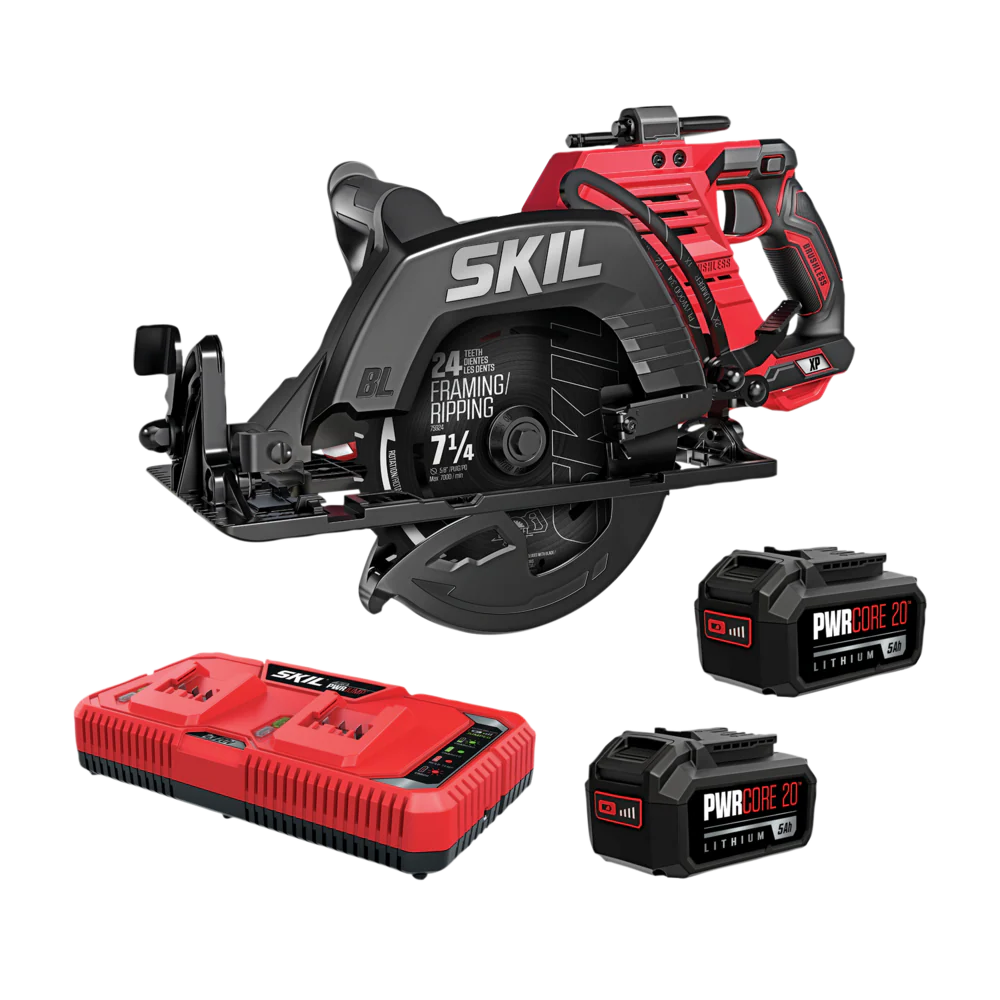 • CORDLESS CIRCULAR SAW WITH 40V POWER – Powered by two PWR CORE 20â„¢ 5.0Ah lithium-ion batteries, this 7-1/4 In. Rear Handle SKILSAW puts the cutting performance of a corded worm drive in a cordless saw