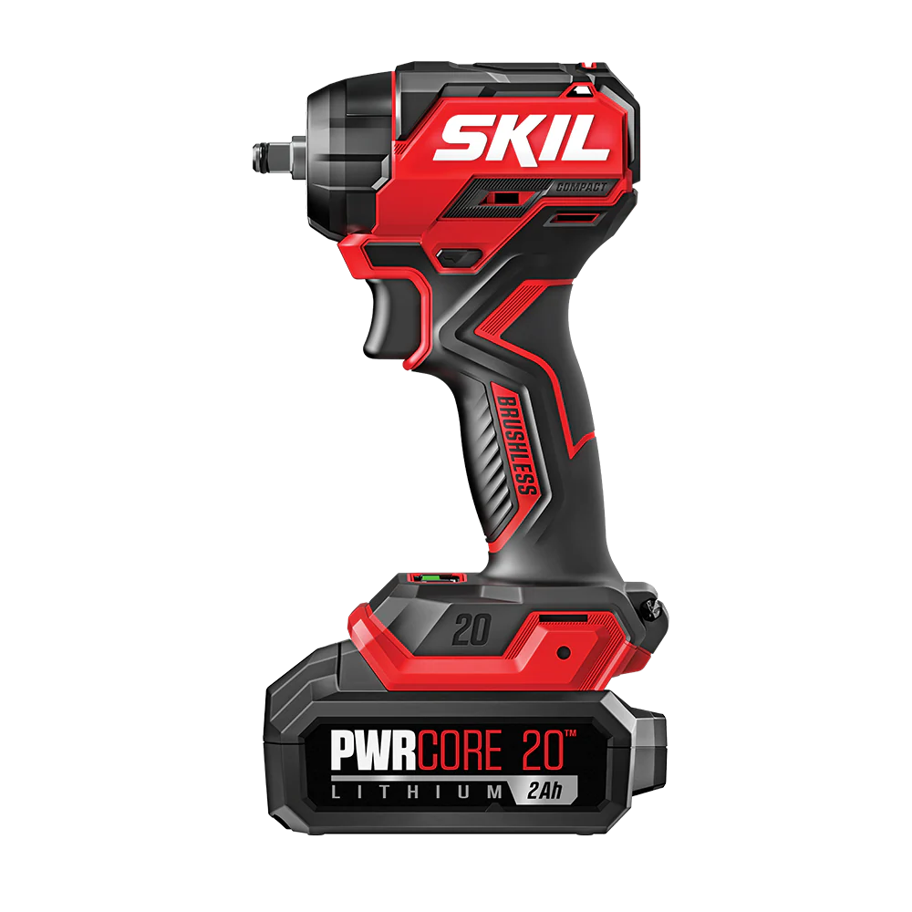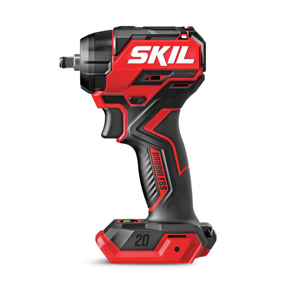 The SKIL PWRCORE 20™ Brushless 20V 3/8-inch Compact Impact Wrench gives you big power in a compact, lightweight package with up to 170 foot-pounds of fastening torque, 220 foot-pounds of nut-busting torque, and up to 3,950 IPM for driving tough nuts and bolts. At more than 1 inch shorter than its previous generation, this cordless impact wrench is an ideal power tool for working overhead or busting hard-to-reach car lug nuts and caliper bolts. Its 3/8-inch square anvil features a friction ring for easy socket changes, and its digital brushless motor combined with three-speed selection provides high-performance power and precise control. Its Halo Light™ provides 5X more light than common LEDs while reducing shadows—and it lights up your workspace for up to 10 minutes