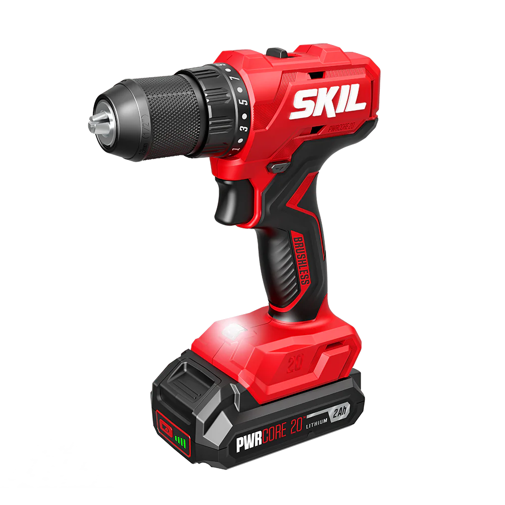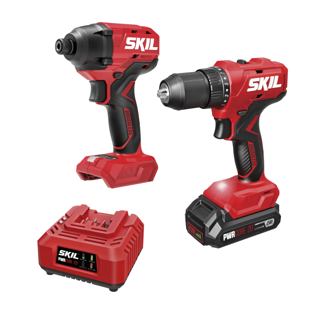 Take on drilling, driving, and fastening tasks with power and precision with the SKIL 20V Brushless Drill Driver & Impact Driver Combo Kit. Drive through a variety of surfaces and secure fasteners quickly with the SKIL 20V Brushless 1/2-Inch Drill Driver. This cordless drill’s digital brushless motor delivers up to 400 inch-pounds of torque in every drive, and its variable-speed trigger and 17 torque settings plus drill mode provide maximum control for every project. Change bits quickly and easily with its 1/2-inch keyless chuck. Its built-in LED light with pre-light and afterglow provides maximum visibility. The SKIL 20V Brushless 1/4 In. Hex Impact Driver drives through dense woods quickly and accurately, whether you’re building a raised garden bed, installing brackets for shelving, or any number of garage projects. The cordless impact driver features a digital brushless motor that delivers up to 1,700 inch-pounds of torque and up to 3,500 IPM to drive through thick surfaces and secure larger bolts. It features two speed settings optimized for precise control or maximum power. Its 1/4-inch hex collet allows quick bit changes while the LED worklight delivers maximum visibility with both pre-light and afterglow. The drill and impact driver combo kit includes the cordless 20V drill driver, cordless 20V impact driver, 20V 2.0Ah battery, 20V charger, a 2-inch double end bit, and 2-inch PH2 bit.