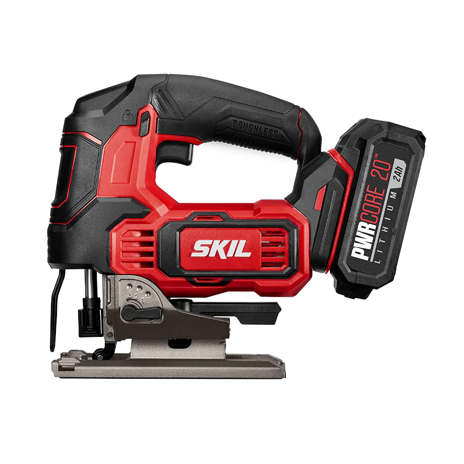 Your Portable Precision Saw. Customize each cut with the SKIL 20V Cordless Jigsaw, ideal for curved and intricate cuts in a variety of materials from particleboard and plywood to metal. This electric saw set comes with a PWRCORE 20™ 2.0Ah Lithium Battery and Automatic PWRJUMP™ Charger—everything you need to tackle your to-do list right away.