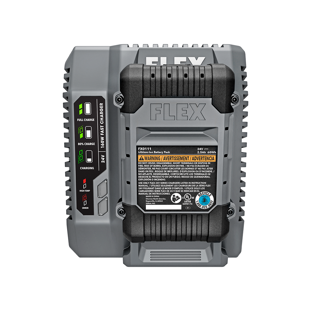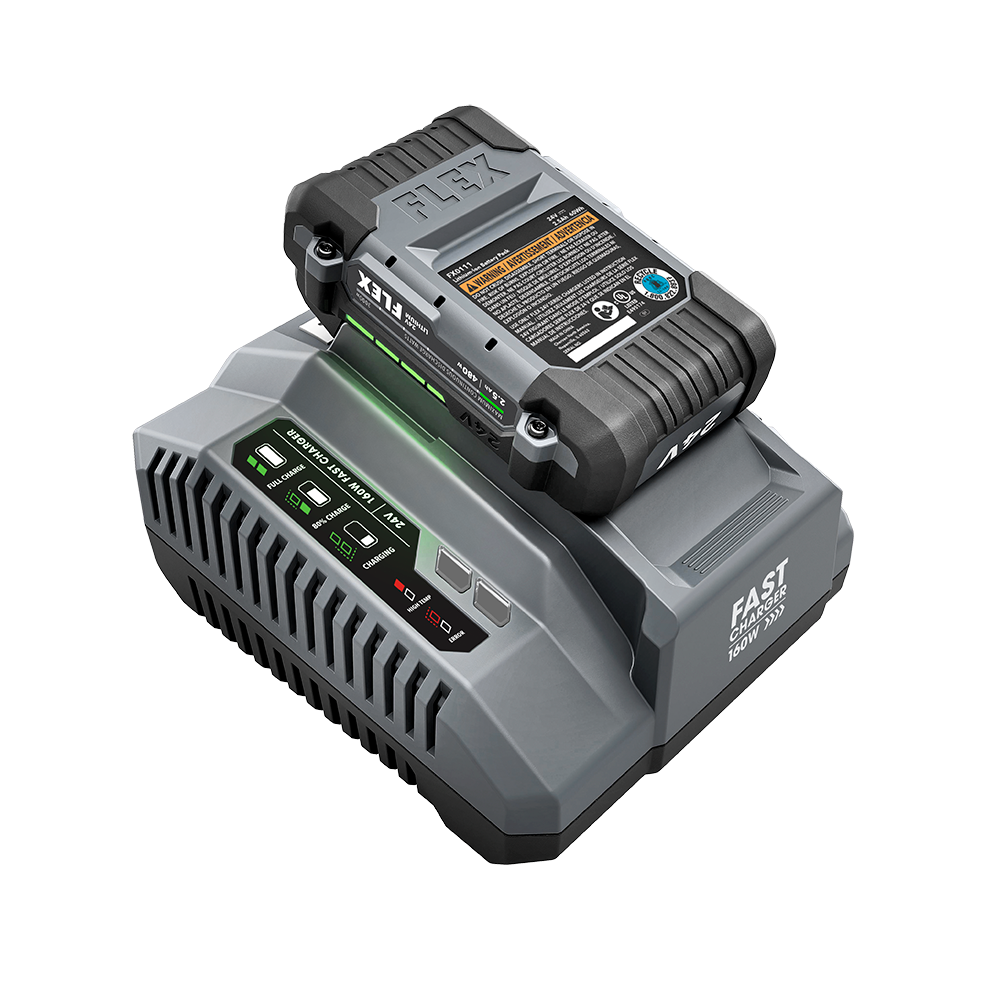 Watt for watt, FLEX 24V chargers are up to 50% faster than the competition. With a built-in intelligent processor, the only dual fan cooling in the industry and more wattage in the standard charger, FLEX batteries spend less time on the sidelines and more time on the job.