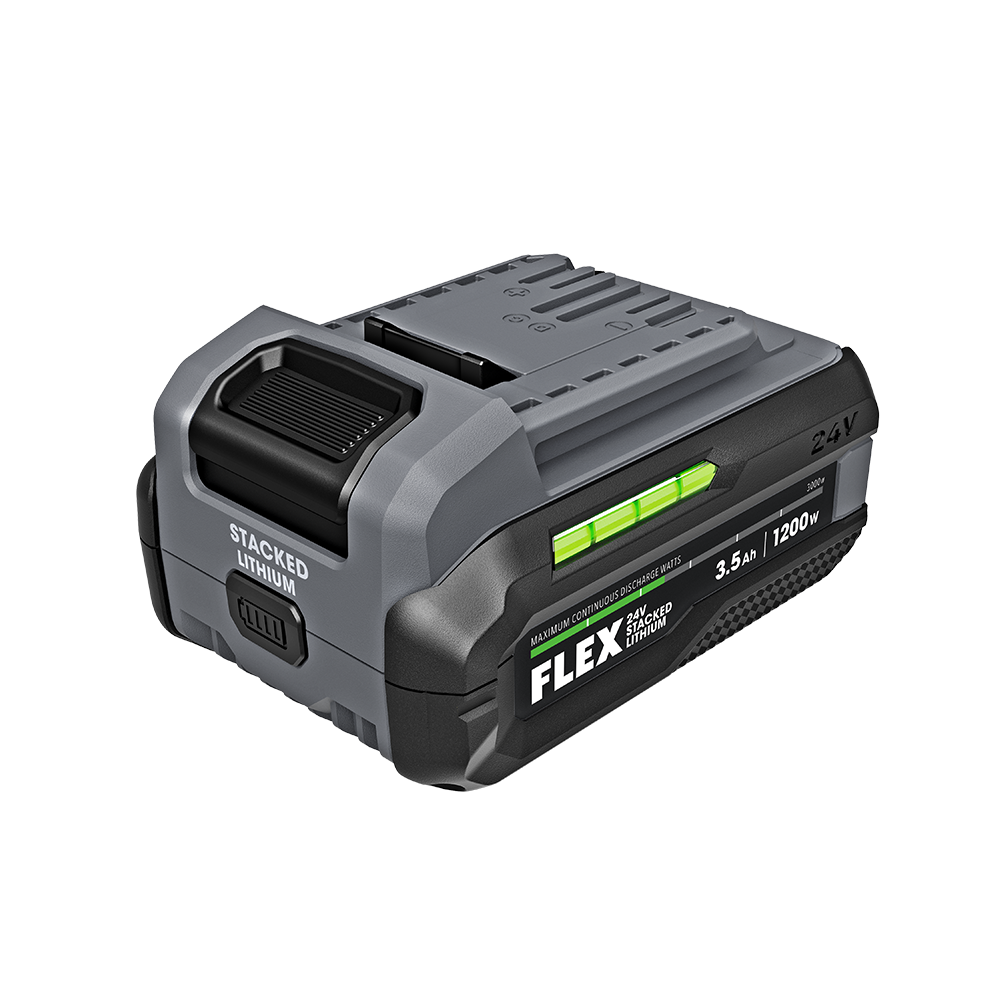 The FLEX 24V Stacked Lithium Battery Platform offers industry-dominating power and performance. Its intelligent power management enables higher discharging, and it combines THERMA-TECHâ„¢+ cooling technology with high-performance heat management protection to offer faster charging and a longer battery life to power through the workday.