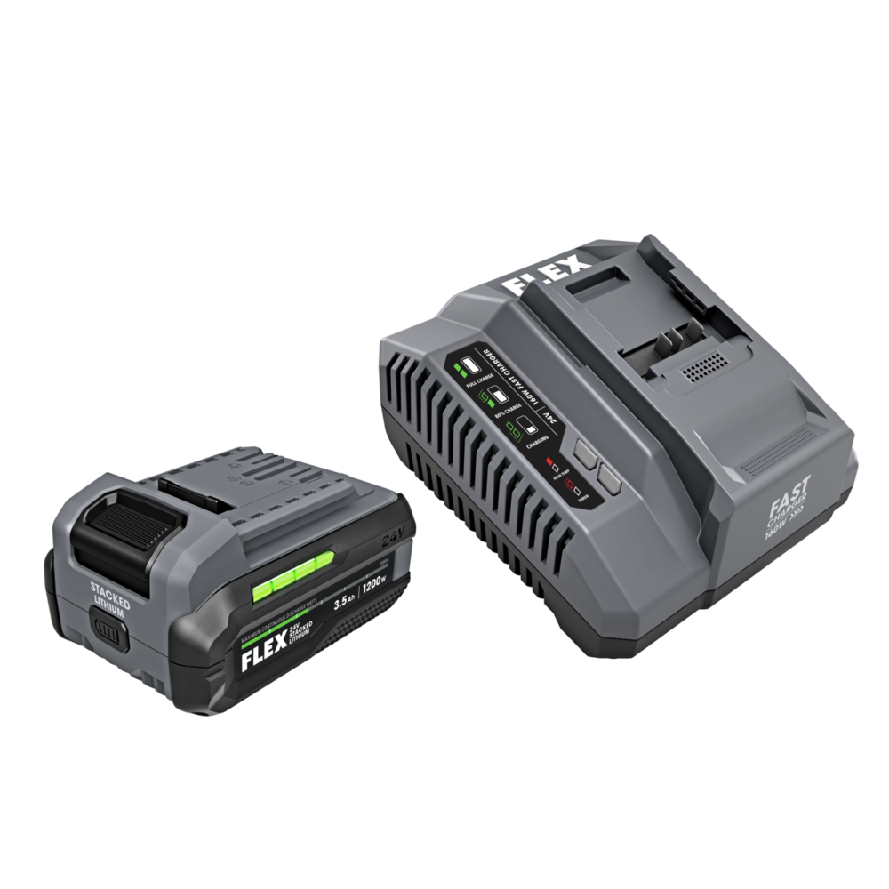 The FLEX 24V Stacked Lithium battery platform offers industry-dominating power and performance. Its intelligent power management enables higher discharging, and it combines THERMA-TECH™+ cooling technology with high-performance heat management protection to offer faster charging and a longer battery life to power through the workday. Kit includes a 24V 3.5Ah Stacked Lithium battery and 160W Fast Charger.