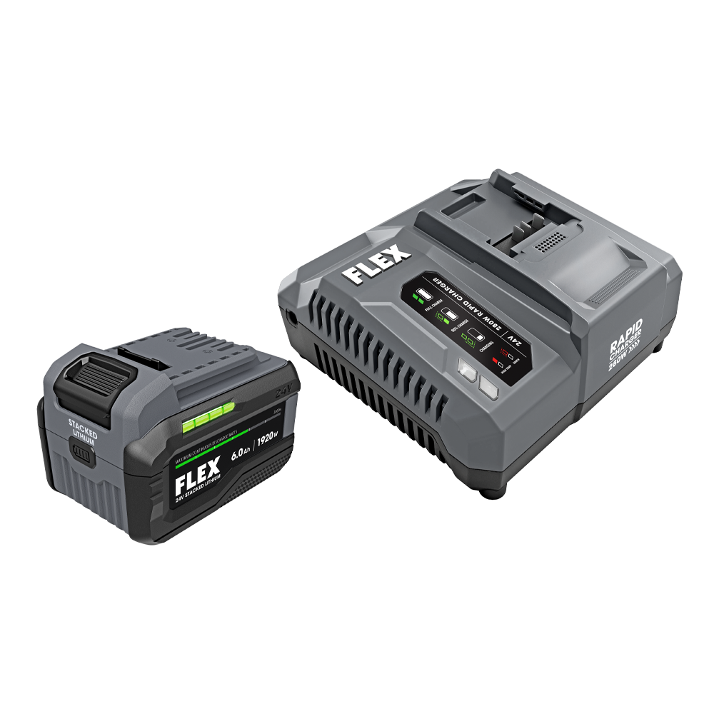 The FLEX 24V Stacked Lithium Battery Platform offers industry-dominating power and performance. Its intelligent power management enables higher discharging, and it combines THERMA-TECH™+ cooling technology with high-performance heat management protection to offer faster charging and a longer battery life to power through the workday. Starter kit includes a 6.0Ah Stacked Lithium battery and 280W Rapid Charger. It’s
