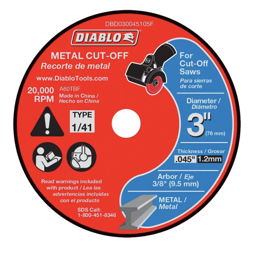 Diablo 3 Iinch Metal Cut-Off Disc .045 Thick – 3/8 Inch (9.5Mm) Arbor – Type 1 Hub – Thin Kerf Design – Premium Aluminum Oxide Blend For Use On Metal Materials – 20,000 Max Rpm