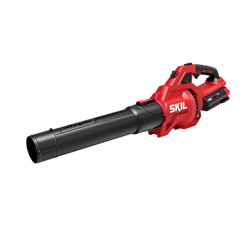 Ditch the gas leaf blower for a smarter solution like the SKIL 40V 460CFM Leaf Blower. This cordless leaf blower is powered by PWRCORE 40™ lithium battery technology to deliver long runtimes along with a digital brushless motor that delivers air speeds up to 120 MPH for performance to clear heavy leaves and debris. Its variable speed control is optimized for any application with turbo boost to power through heavier debris. The battery-powered leaf blower runs for up to 60 minutes on low with the included 2.0Ah battery. IPX4-rated weather resistance provides added durability for use in tough weather conditions, and a quick-release tube ensures compact storage between uses. The electric leaf blower kit includes a 2.0Ah PWRCORE 40™ battery and 60W charger.