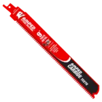 Steel Demon carbide 8 TPI thick metal cutting recip blade delivers 50x longer cutting life and clean finish in strut, pipe, stainless steel and all other metals ranging in 1/16″ to 5/16″ thickness.