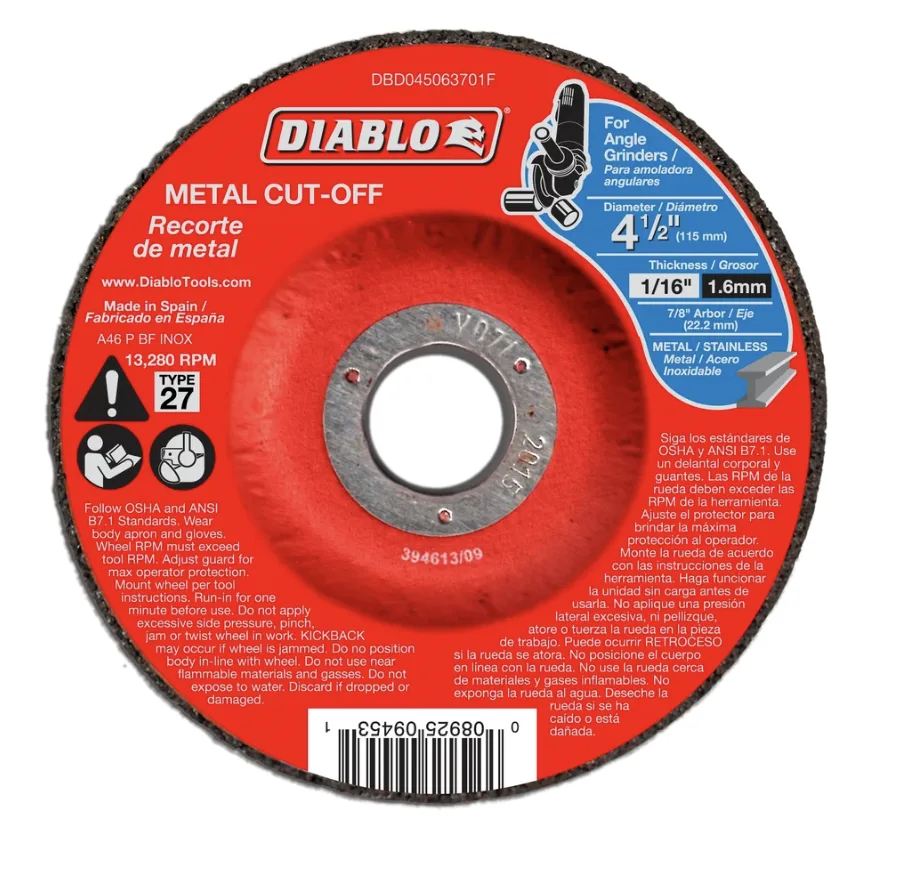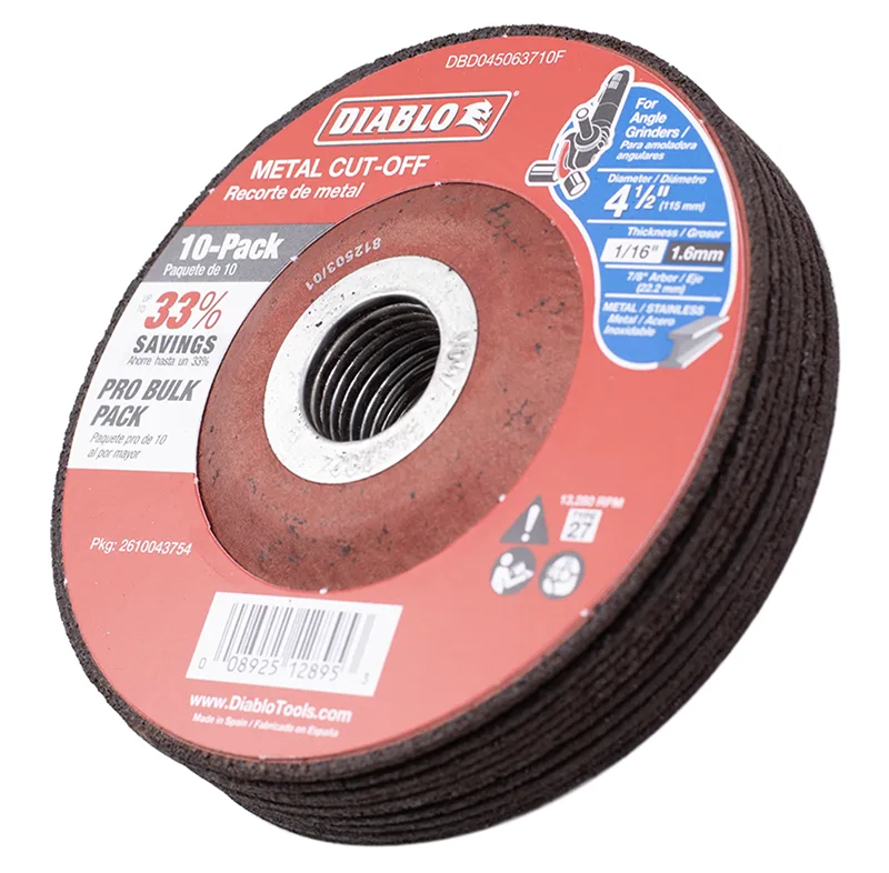 Diablo 4 1/2 Inch Metal Cut-Off Disc .0625 Inch Thick – 7/8 Inch (22.2Mm) Arbor – Type 27 Hub – Premium Aluminum Oxide Blend For Use On Metal Materials – 13,280 Max Rpm – 10 Pack