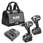 Elevate your game to the next level with this comprehensive, four-tool FLEX combo kit. Each maximizes power and efficiency with 24V cross-compatibility and powerful, sensor-free brushless motors. Drill with 1,400 in-lbs. of torque and 2,500 RPM with the FLEX 1/2″ 2-Speed Drill Driver. Fasten with multi-mode control and 2,500 in-lbs of torque using the FLEX 1/4″ Quick Eject Hex Impact Driver. The FLEX Reciprocating Saw powers through tough materials with linear and orbital modes up to 4,000 RPM (1-¼” SPM). And the convenient FLEX Work Light provides 300 Lumens of added visibility while you work. Each comes powered with the FLEX Advantage, using the same FLEX 24V batteries with unrivaled power, runtime, and fast charging . Kit includes all four tools, two 24V batteries, and one charger.