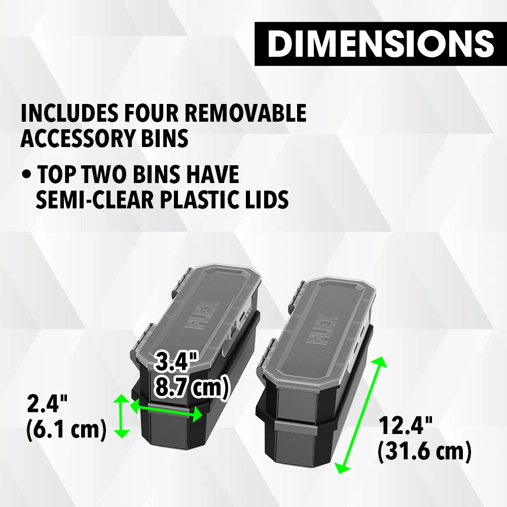 Pack everything you need for a day on the job with the FLEX STACK PACK⢠Suitcase Tool Box. IP65 all-weather protection shields your tools and accessories from the elements, and an impact-resistant polypropylene body with aluminum reinforced corners offers protection from the toughest jobsite conditions. Quick-connect interlocking attachment points offer fast and effortless connectivity with any piece in the STACK PACK⢠storage system so you can custom build your layout for the ultimate traveling workshop. Protected by a one-year limited warranty when registered within 30 days of purchase at registermyFLEX.com.