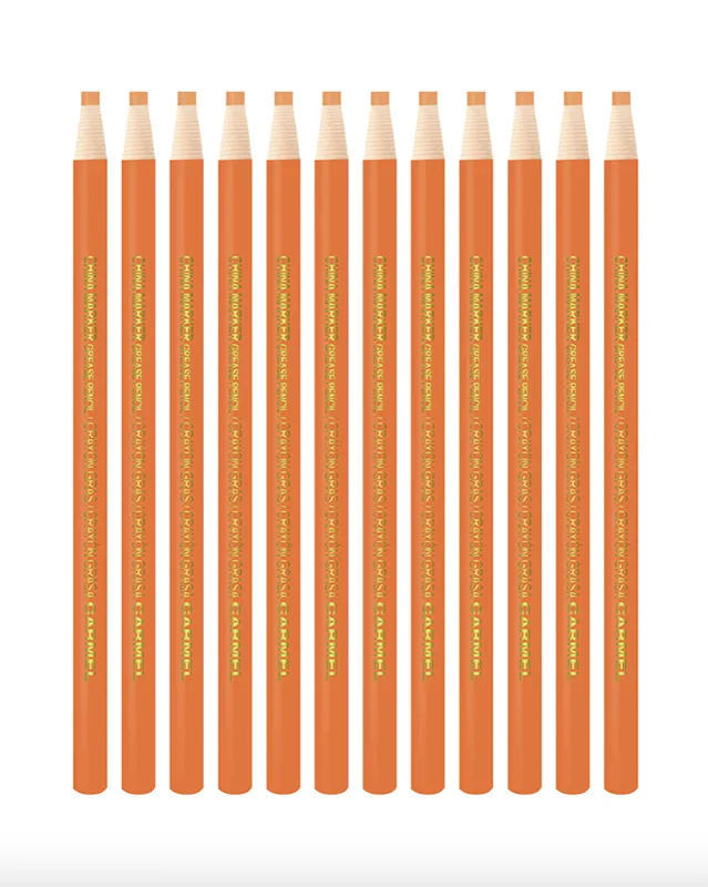Also known as a China marker, this grease pencil consists of a greasy wax and clay core wrapped in paper. It is easily sharpened by tearing the string that surrounds it at the tip.