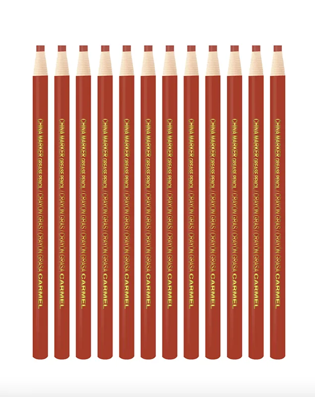 Also known as a China marker, this grease pencil consists of a greasy wax and clay core wrapped in paper. It is easily sharpened by tearing the string that surrounds it at the tip.