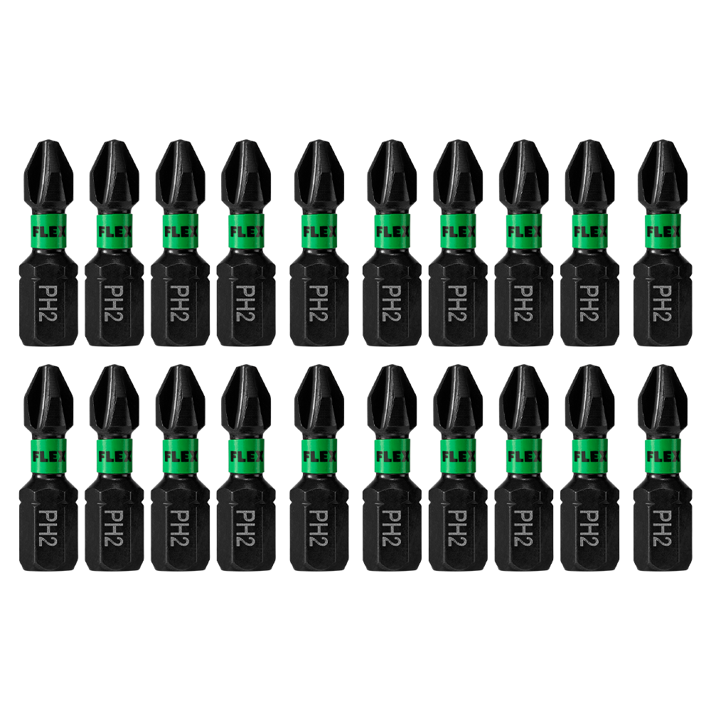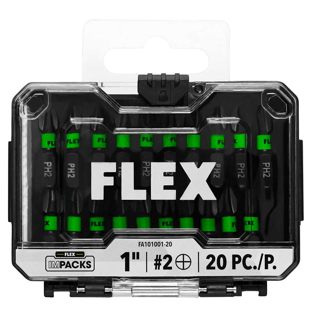Power through job after job with precision, durability, and control in every bit. FLEX 1” PH2 Impact Driver Bits are engineered for optimal impact distribution, so no energy or effort goes to waste. Built for demanding applications, FLEX impact-rated bits absorb torsion and torque at peak power, and specially constructed material composition optimizes hardness and strength for unrivaled bit life. All this comes packed in an IMPACKS bulk bit case with compression fit sides for customizable organization and easy accessibility in any case in the STACK PACK™ lineup.