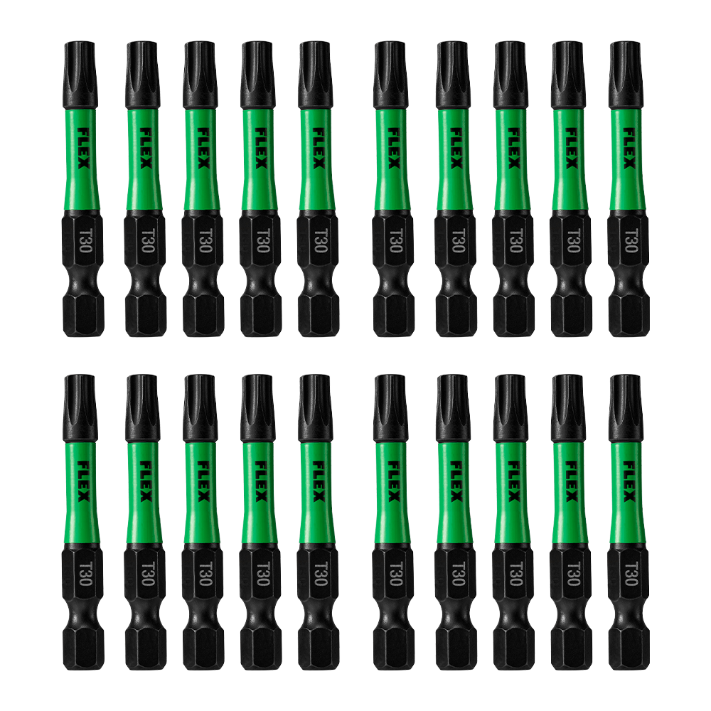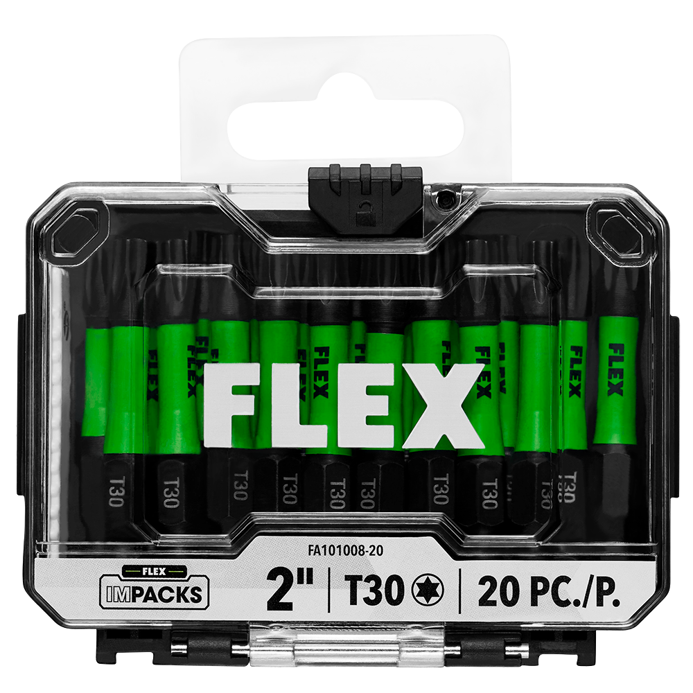 Power through job after job with precision, durability, and control in every bit. FLEX 2” T30 Impact Driver Bits are engineered for optimal impact distribution, so no energy or effort goes to waste. Built for demanding applications, FLEX impact-rated bits absorb torsion and torque at peak power, and specially constructed material composition optimizes hardness and strength for unrivaled bit life. All this comes packed in an IMPACKS bulk bit case with compression fit sides for customizable organization and easy accessibility in any case in the STACK PACK™ lineup.
