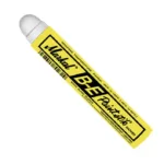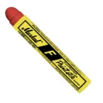 Markal F Fluorescent Yellow Cold Surface Marker with a point size of 11/16″ is suitable for immediate identification in low light conditions and creates highly visible marks. Marker of length 4 3/4″ provides fluorescent marks that illuminate under UV or black light. It has a marking range of -50 to 150 deg F and the easy to hold paperboard holder secures the marker for optimum use. It is ideal for surfaces like steel and iron, pipes and tubes, rubber and tires, glass, plastic, lumber and timber.
