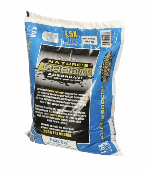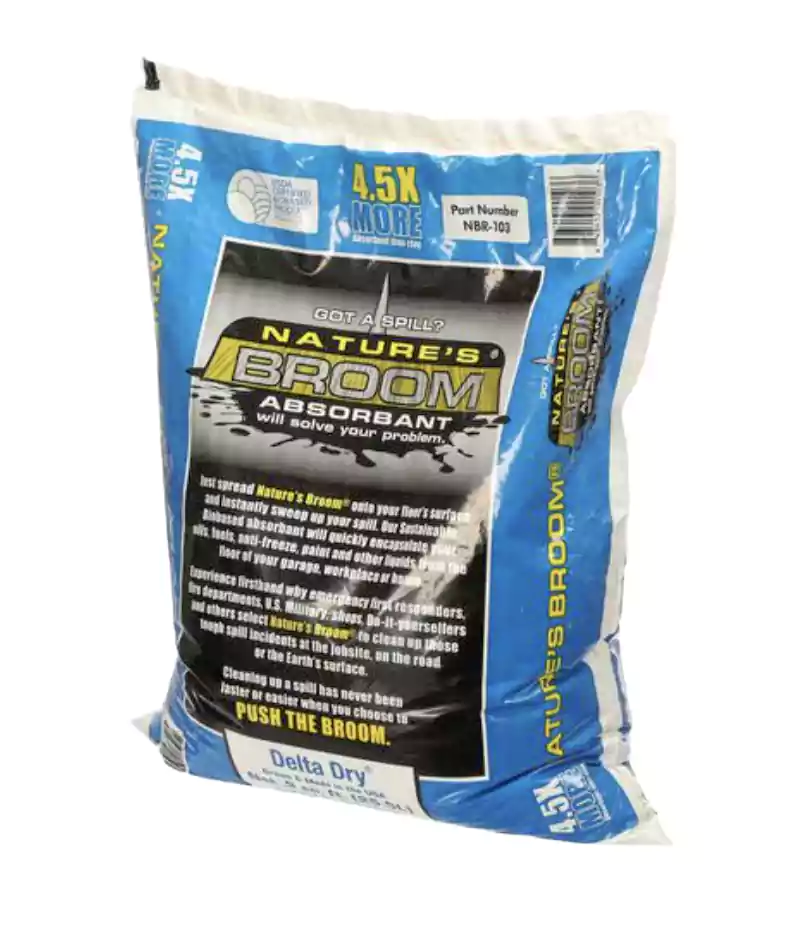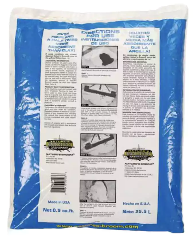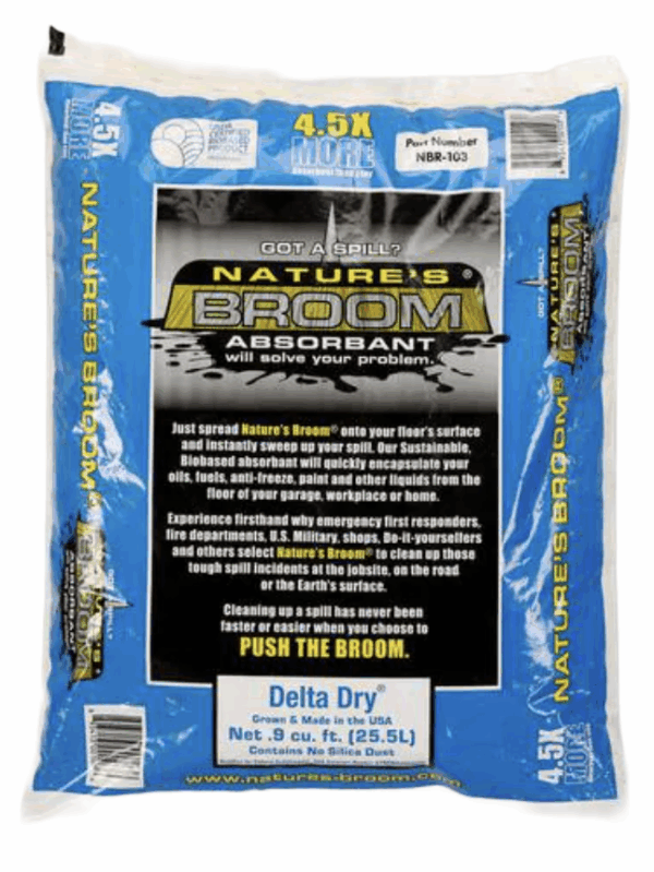 Nature’s Broom is a revolutionary absorbent technology that starts soaking up the spill as soon as it touches the liquid! Unlike clay absorbents, there is no need to wait before finishing cleanup. It absorbs a wide range of oils, fuels, anti-freeze, grease, and other types of spills. Nature’s Broom contains bio-based granules that encapsulate the spill on contact, preventing the spill from leaching into the environment.