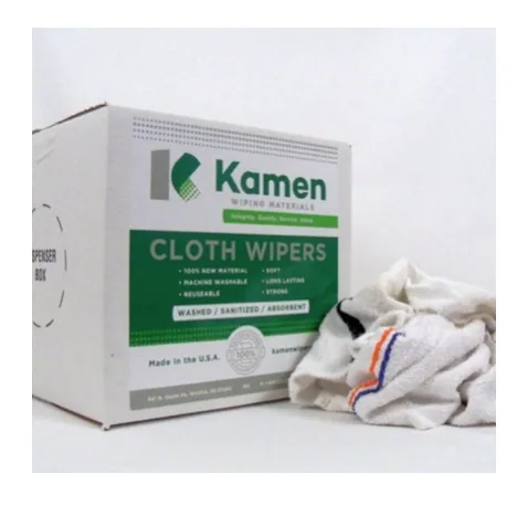 New grade “B” white terry bar mops with finished edges. Some slight knitting imperfections. Good all purpose wiper. Highly absorbent and machine washable. Approx. 9-10 wipers per pound.
