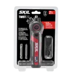 From assembling furniture and toys to tightening screws in hard-to-reach cabinets, get small jobs and repairs done quickly and comfortably with the SKIL Twist 2.0 Rechargeable 4V Screwdriver. This ergonomic electric screwdriver features a patent-pending pivoting head that locks between three positions — 0, 22.5, and 45 degrees — for improved comfort in tight spaces. It features three torque settings that allow you to adapt to the application at hand. Its trigger button is conveniently located for easy one-finger use, and its bright LED lights up dark spaces. The cordless screwdriver’s integrated battery features a USB-C charging port with included cable for convenient recharging.