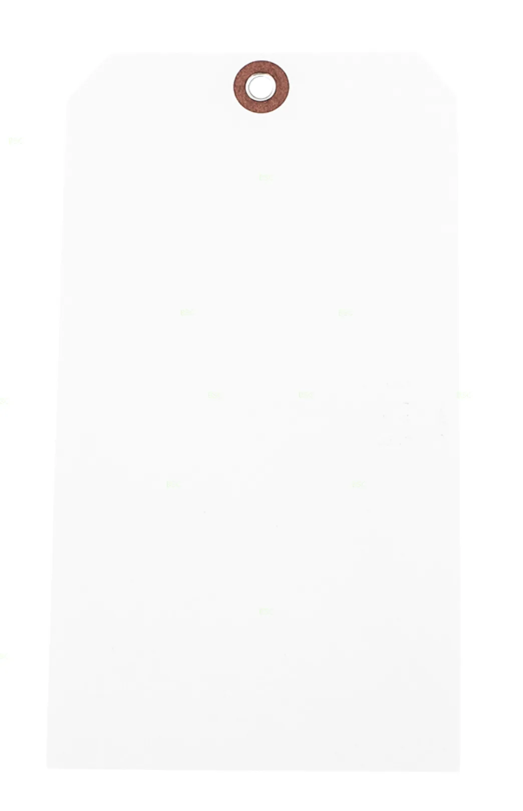- 7 1/4″ X 4″ White Heavy Card Stock w/Reinforced Eyelet