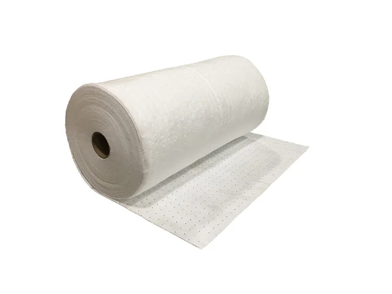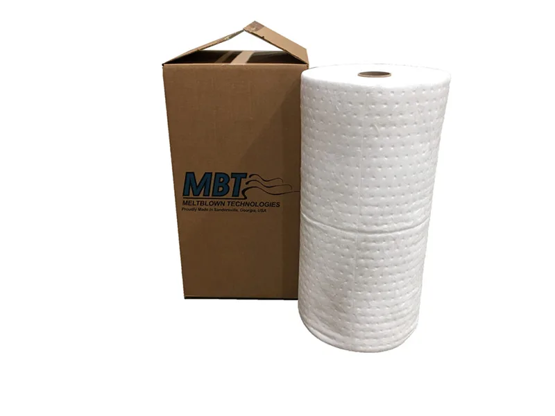 White meltblown dimpled medium weight oil only sorbents are very similar to our standard meltblown products. We pass this media through our thermal bonder, which ties down loose fibers. Dimpled sorbents are also perforated, which promotes waste minimization.