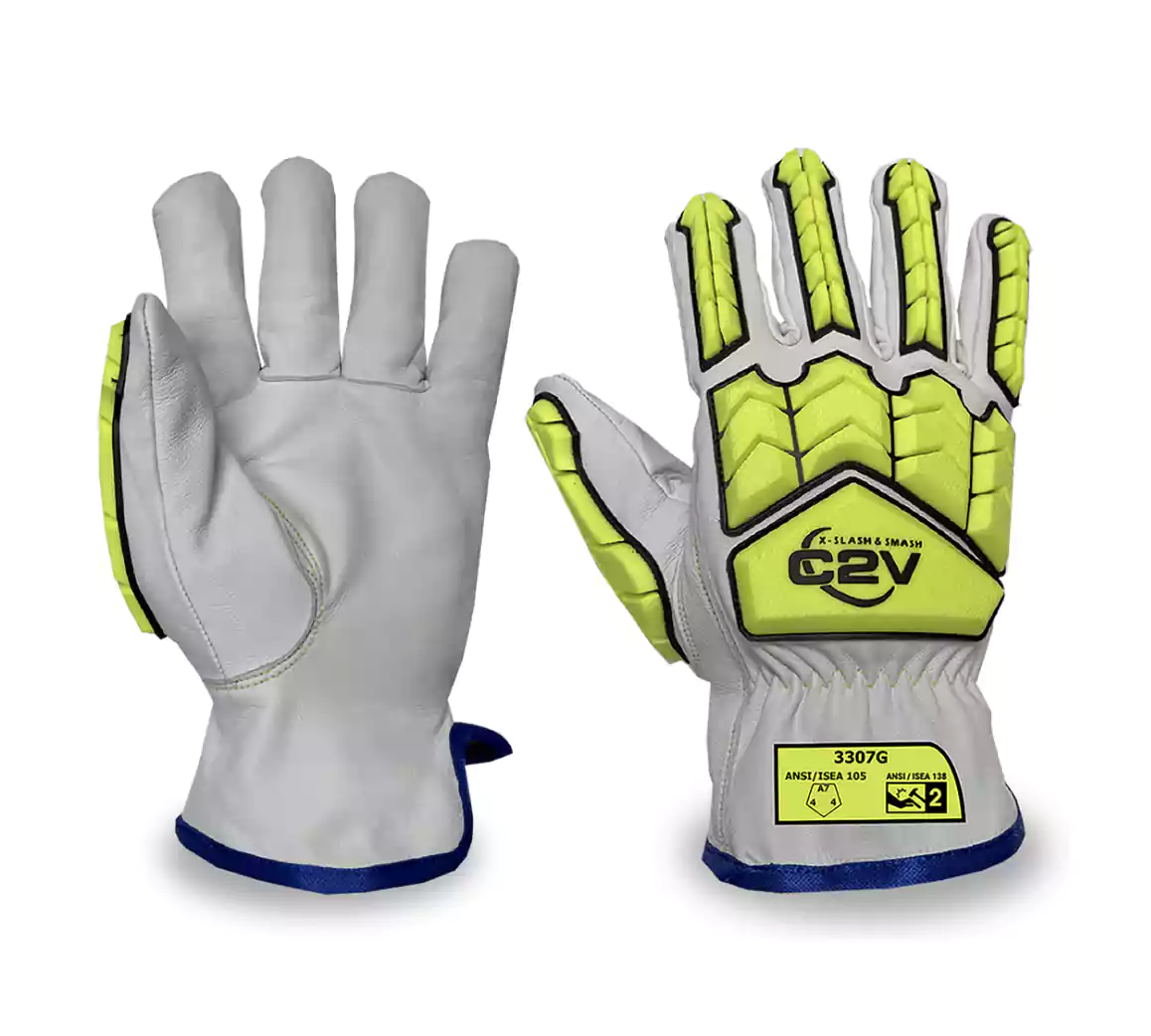 The X-Slash & Smash 3307G offers ANSI A7 cut resistance and ANSI level 2 impact protection in addition to dexterity and comfort. Crafted with goatskin to offer superior comfort, abrasion resistance, and the best tactile sensitivity in the leather family. The HPPE/Steel/Glass liner is cut resistant. The ergonomic keystone thumb design reduces hand fatigue and promotes a wider range of motion. It delivers durability, protection, and functionality. ANSI Abrasion level 4 resistance, ANSI Puncture level 4 resistance.