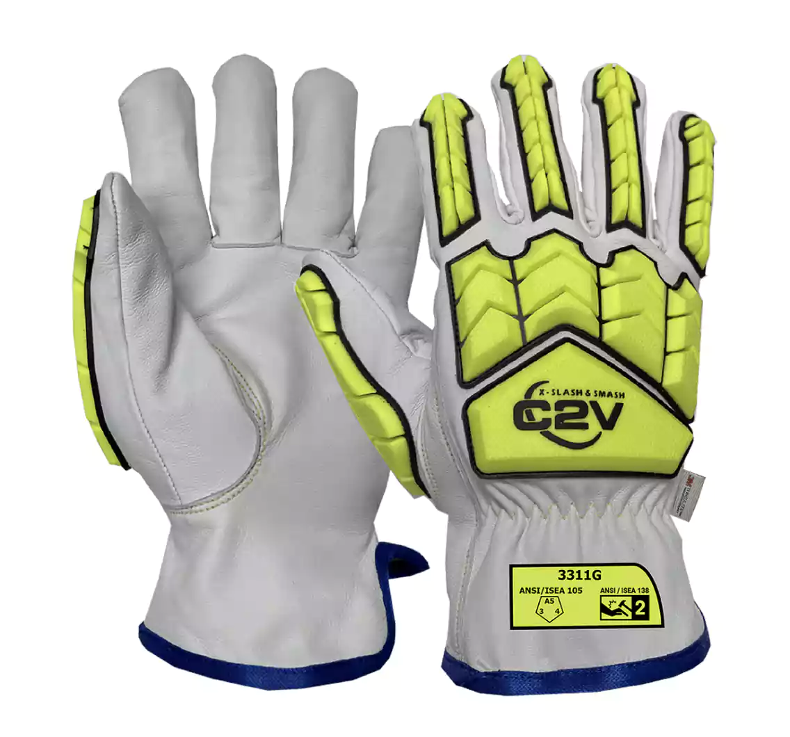 The X-Slash & Smash 3311G combines ANSI A5 cut resistance, ANSI level 2 impact resistance, and warmth to make an ideal glove for sharp materials, jagged materials, and cold days. The C100 Thinsulate® liner adds warmth to the inside of the glove. The HPPE/Steel/Glass liner ensures dexterity, comfort, and cut protection. The goatskin exterior delivers comfort, abrasion resistance, and tactile sensitivity. The ergonomic keystone thumb design reduces hand fatigue and promotes a wider range of motion to enable optimal performance. ANSI Abrasion level 3 resistance, ANSI Puncture level 4 resistance.