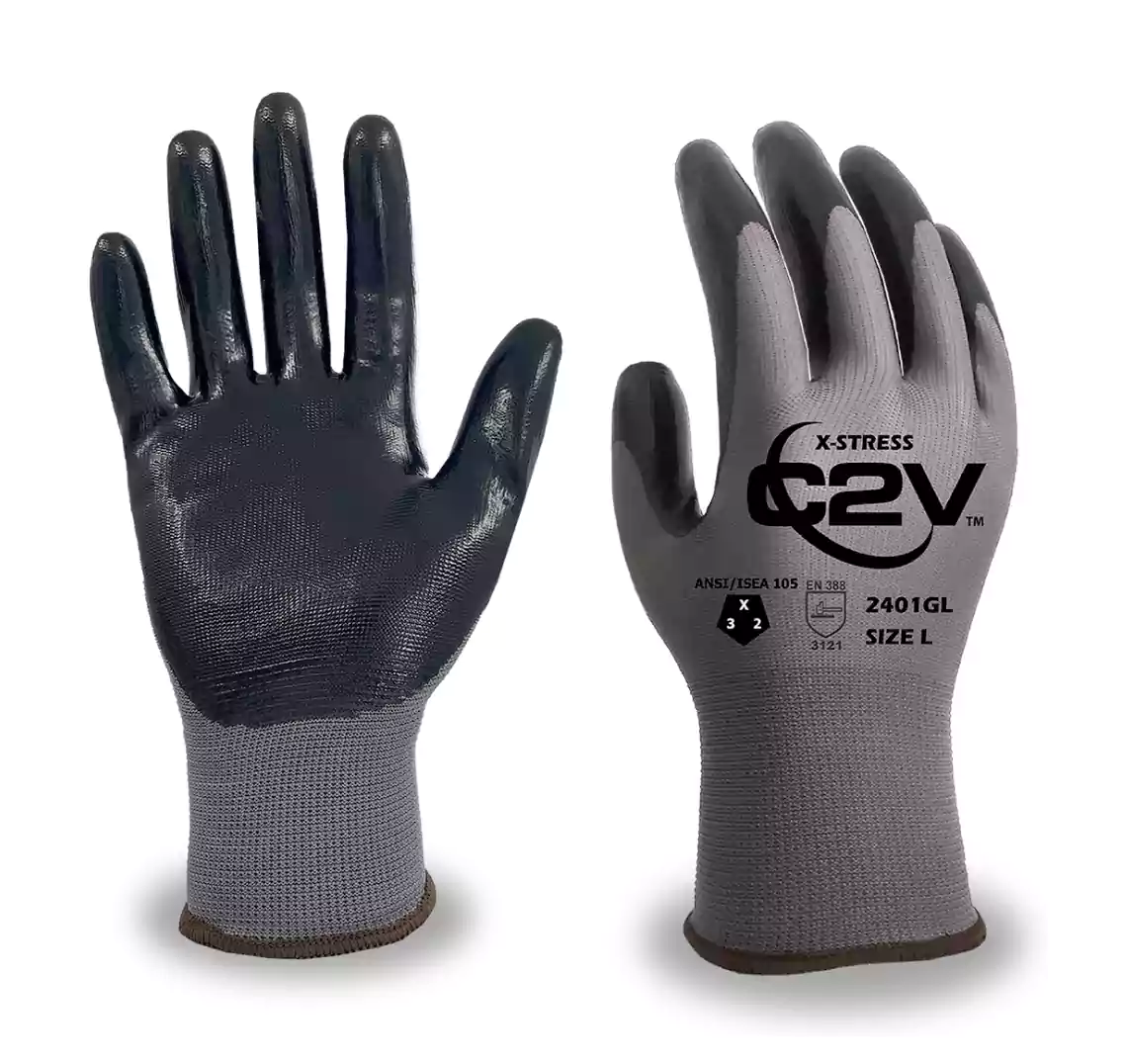 The X-Stress 2401G is a perfect choice for lightweight hand protection. We combined a lightweight polyester shell with the protection of nitrile in the palm to give you a breathable glove with a palm that’s highly impermeable to liquids. The knit wrist is form-fitting to prevent dirt and debris from entering the glove. We can tri-fold and shrink-wrap these bad boys for carefree vending machine dispensing.